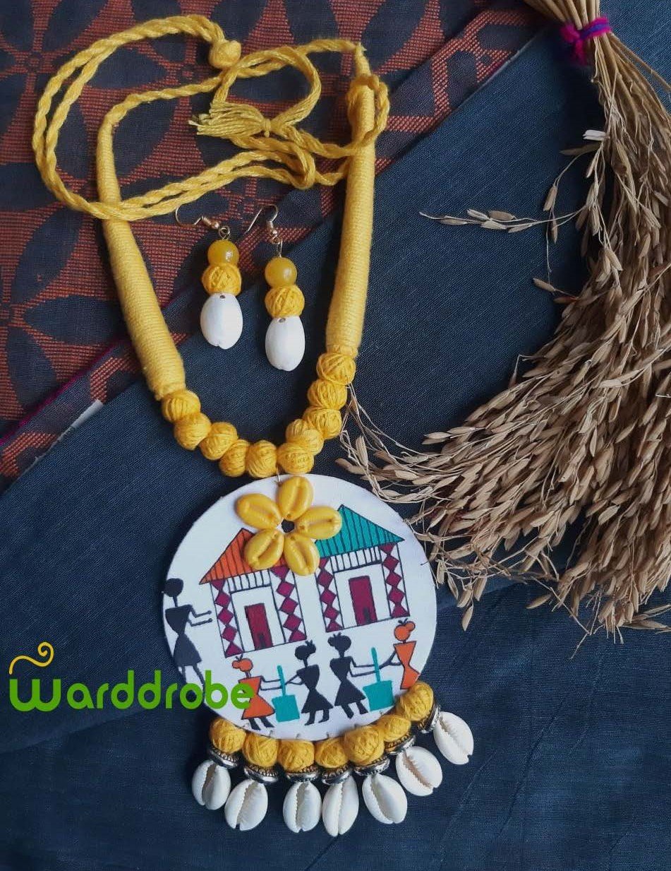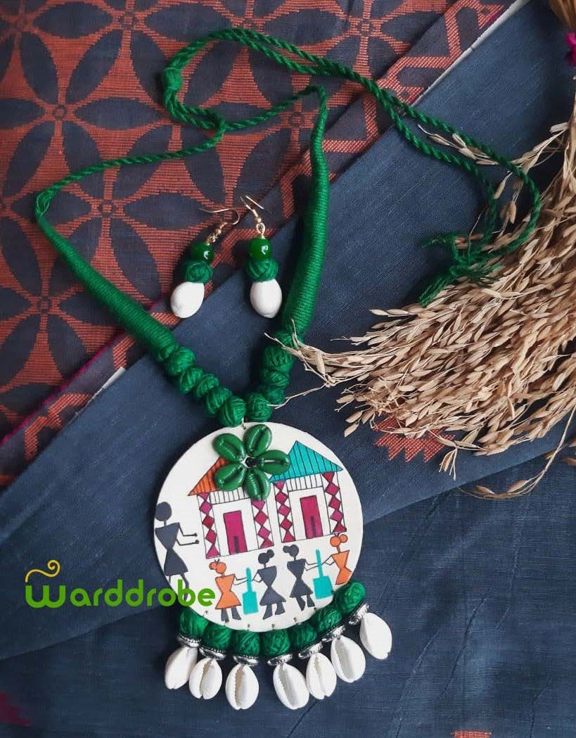 Celebrate conscious fashion with this eco‑friendly handmade jewellery set crafted from fabric and adorned with intricate hand‑painted designs. Each piece reflects authentic craftsmanship, offering comfort and uniqueness. Ideal for pairing with ethnic wear or fusion outfits, this jewellery set makes a thoughtful gift for art lovers.