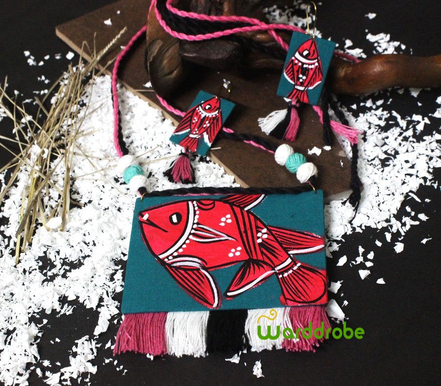 Celebrate conscious fashion with this eco‑friendly handmade jewellery set crafted from fabric and adorned with intricate hand‑painted designs. Each piece reflects authentic craftsmanship, offering comfort and uniqueness. Ideal for pairing with ethnic wear or fusion outfits, this jewellery set makes a thoughtful gift for art lovers.
