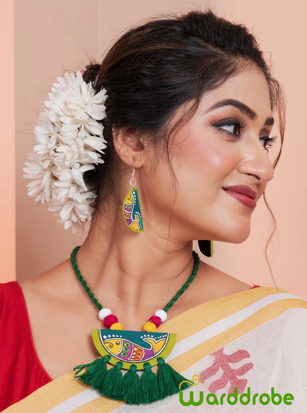 Elevate your daily style with this lightweight handmade jewellery set crafted from soft fabric and hand‑painted with care. Its versatile design complements both casual and formal attire, making it a must‑have accessory for women who love unique, artistic fashion.