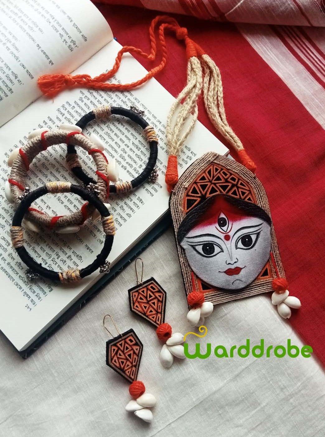 Add a splash of color to your celebrations with this hand‑painted fabric jewellery set. Designed by skilled artisans, the necklace and earrings showcase bold hues and intricate motifs that embody cultural heritage. Lightweight and skin‑friendly, this set ensures you shine at weddings, festivals, or parties.