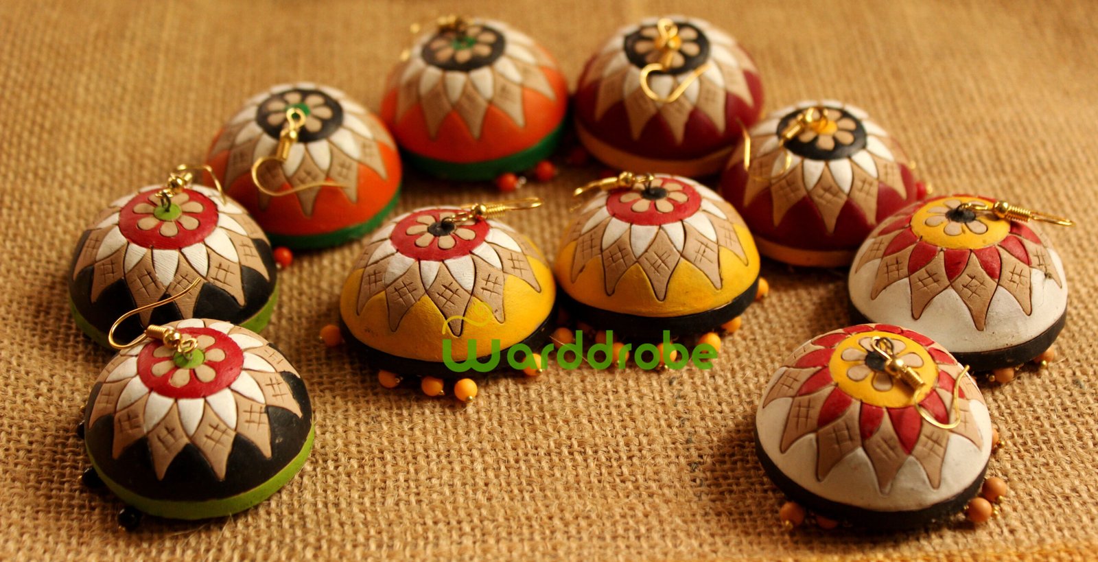 Handmade & Hand‑Painted Terracotta Jewellery Earrings.