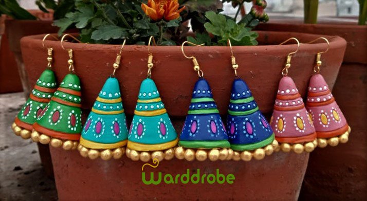 Handmade & Hand‑Painted Terracotta Jewellery Earrings.