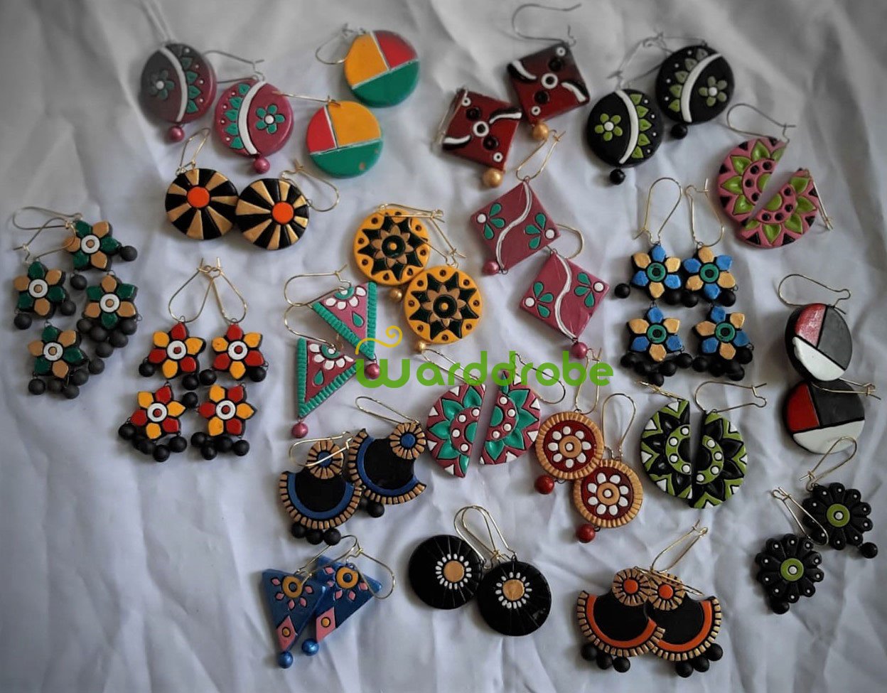Add a touch of tradition to your celebrations with this hand‑painted terracotta jewellery earrings. Designed by skilled artisans, The earrings feature bold colors and intricate detailing inspired by cultural heritage. Lightweight and skin‑friendly, this set ensures you shine at weddings, festivals, or parties