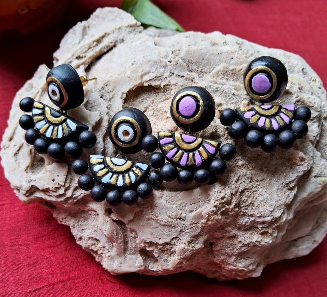 Handmade & Hand‑Painted Terracotta Jewellery Earrings.