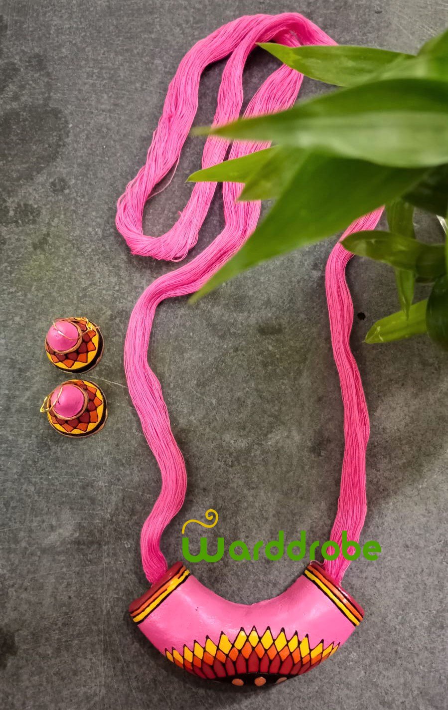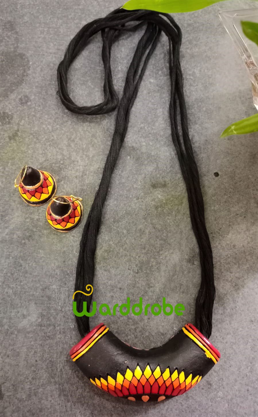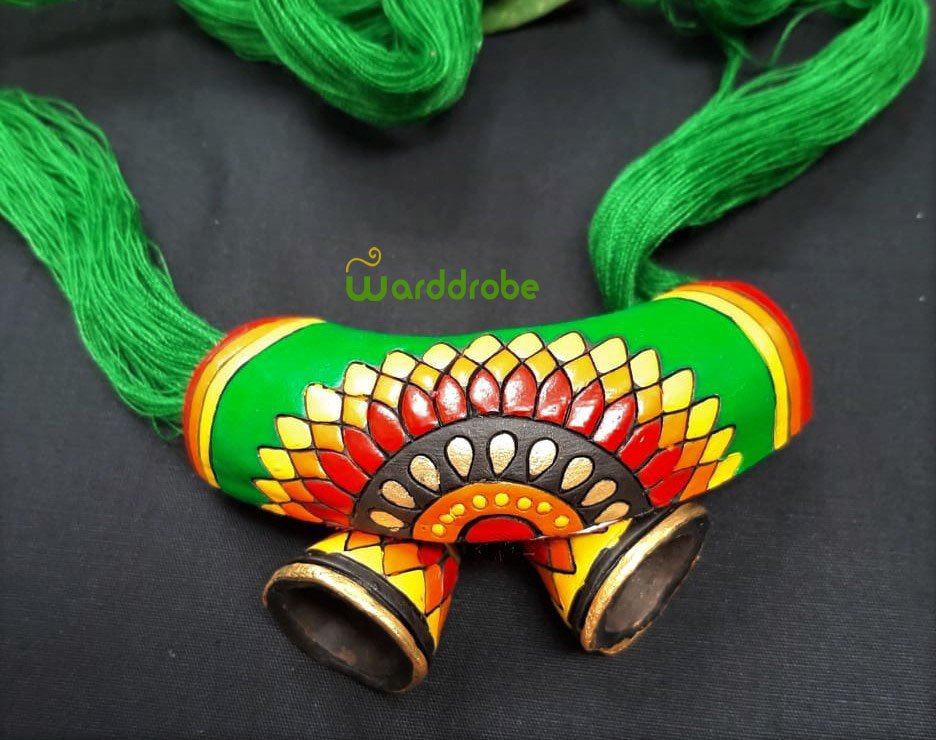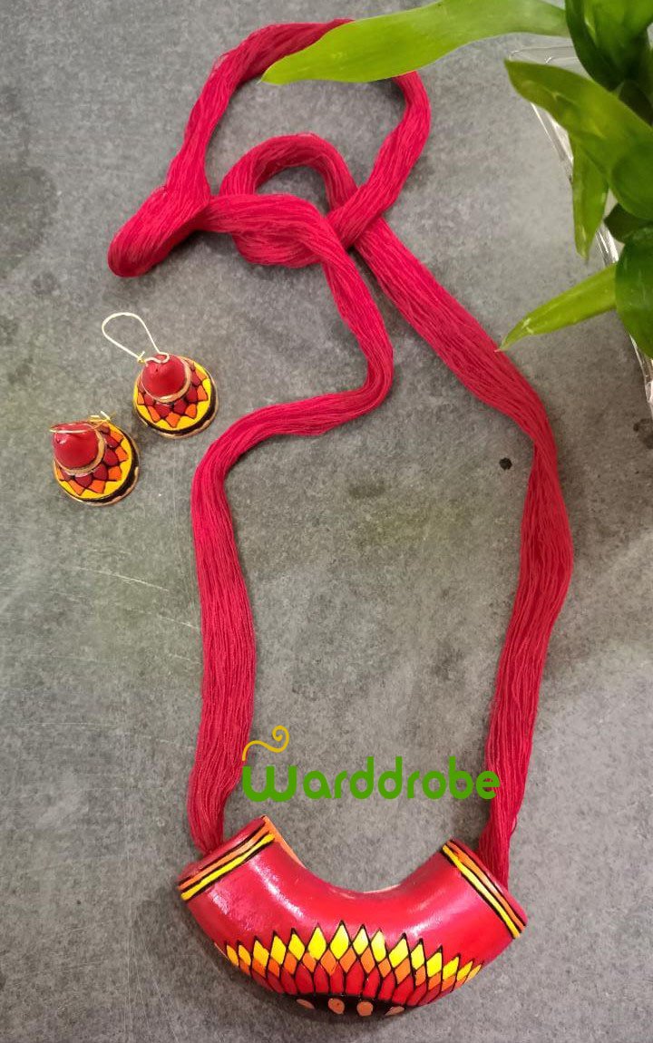 Handmade & Hand‑Painted Terracotta Jewellery Pendant Set.