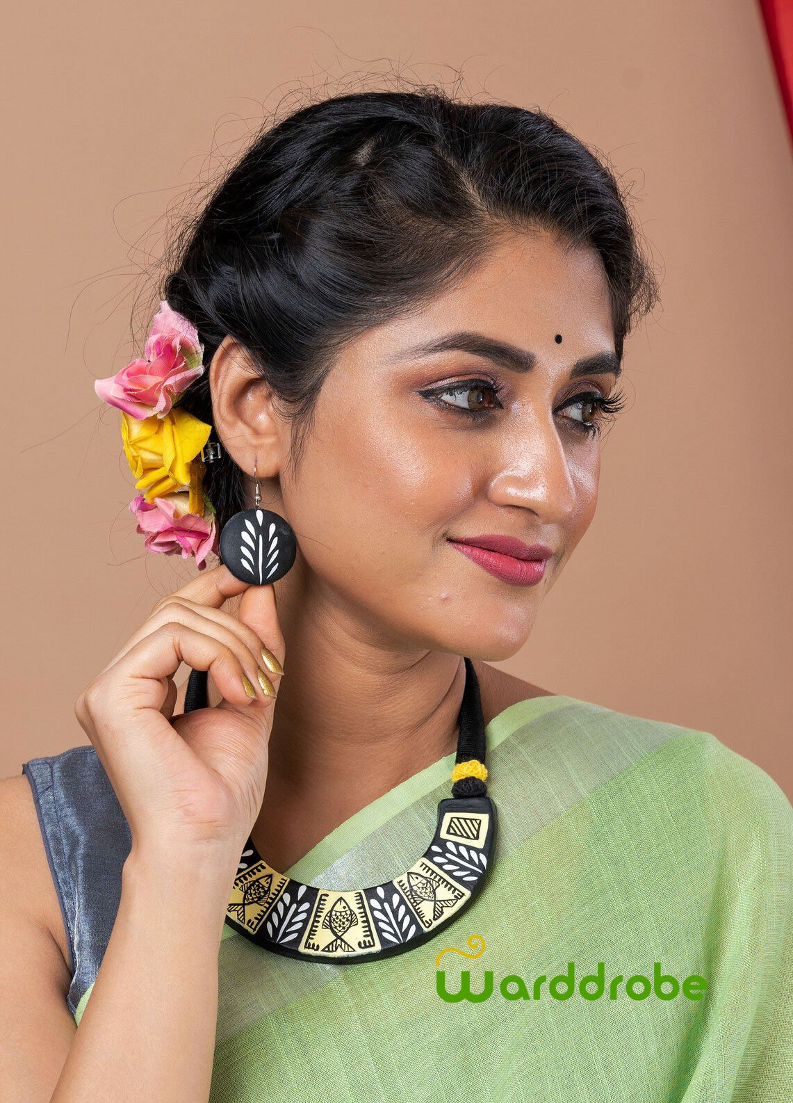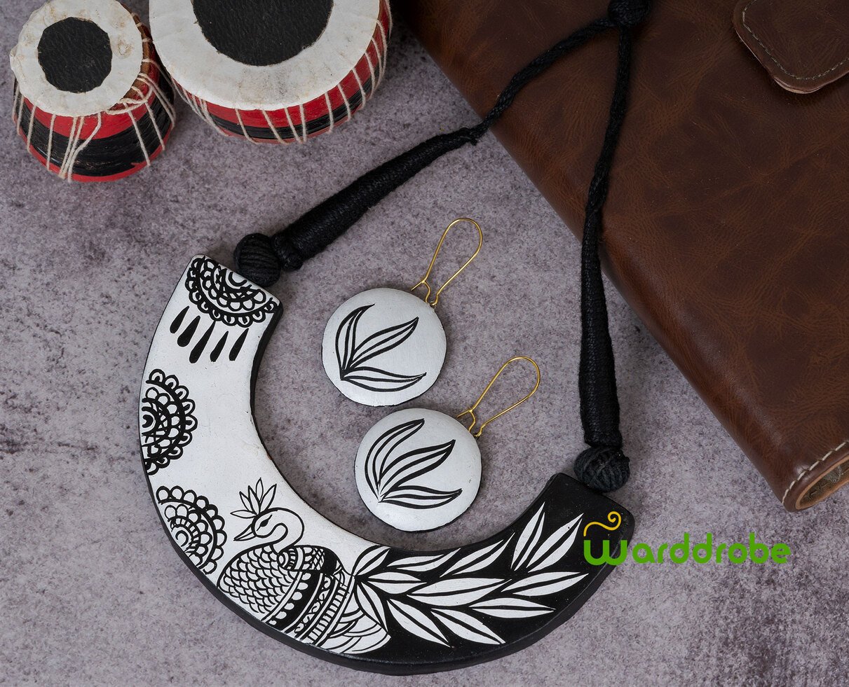 Celebrate artistry with this handmade terracotta jewellery set, beautifully hand‑painted to showcase vibrant motifs. Featuring a statement necklace and matching earrings, this eco‑friendly set blends tradition with modern style. Lightweight yet durable, it’s perfect for festive occasions or everyday wear