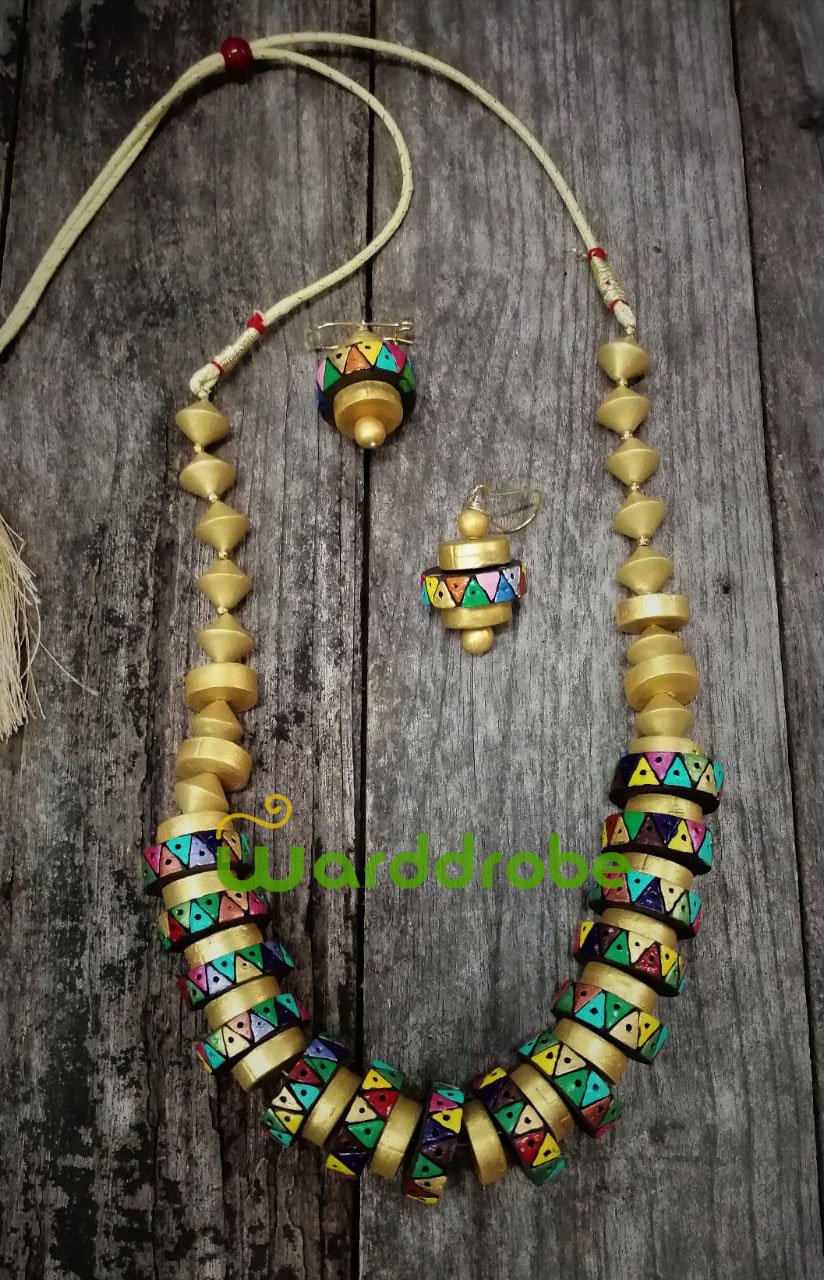 Crafted from natural clay and hand‑painted with care, this terracotta jewellery set is a true work of art. Each piece reflects sustainable fashion and authentic craftsmanship, making it ideal for women who value unique, eco‑friendly accessories. Pair it with ethnic or fusion outfits for a standout look
