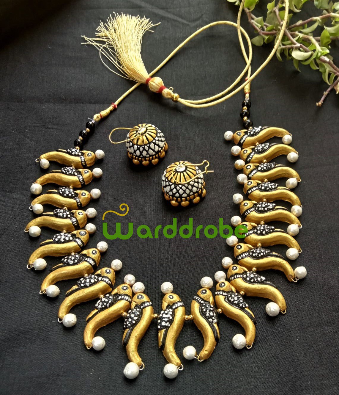 Celebrate artistry with this handmade terracotta jewellery set, beautifully hand‑painted to showcase vibrant motifs. Featuring a statement necklace and matching earrings, this eco‑friendly set blends tradition with modern style. Lightweight yet durable, it’s perfect for festive occasions or everyday wear