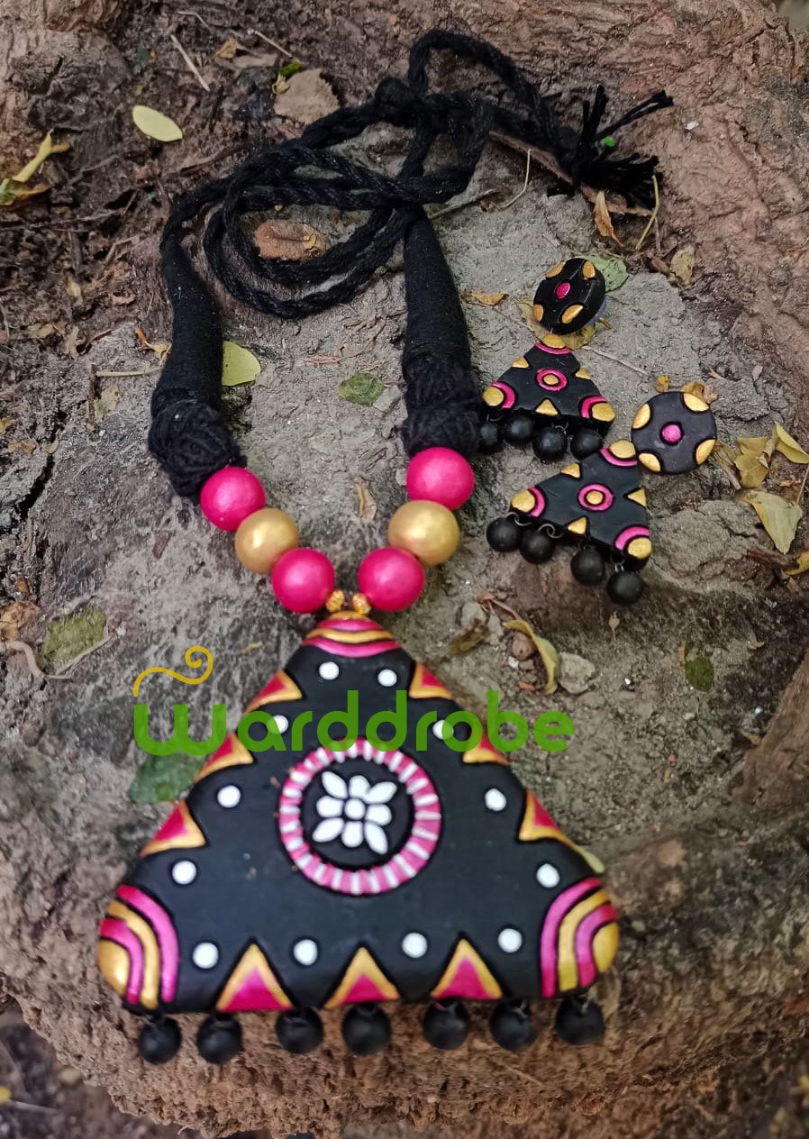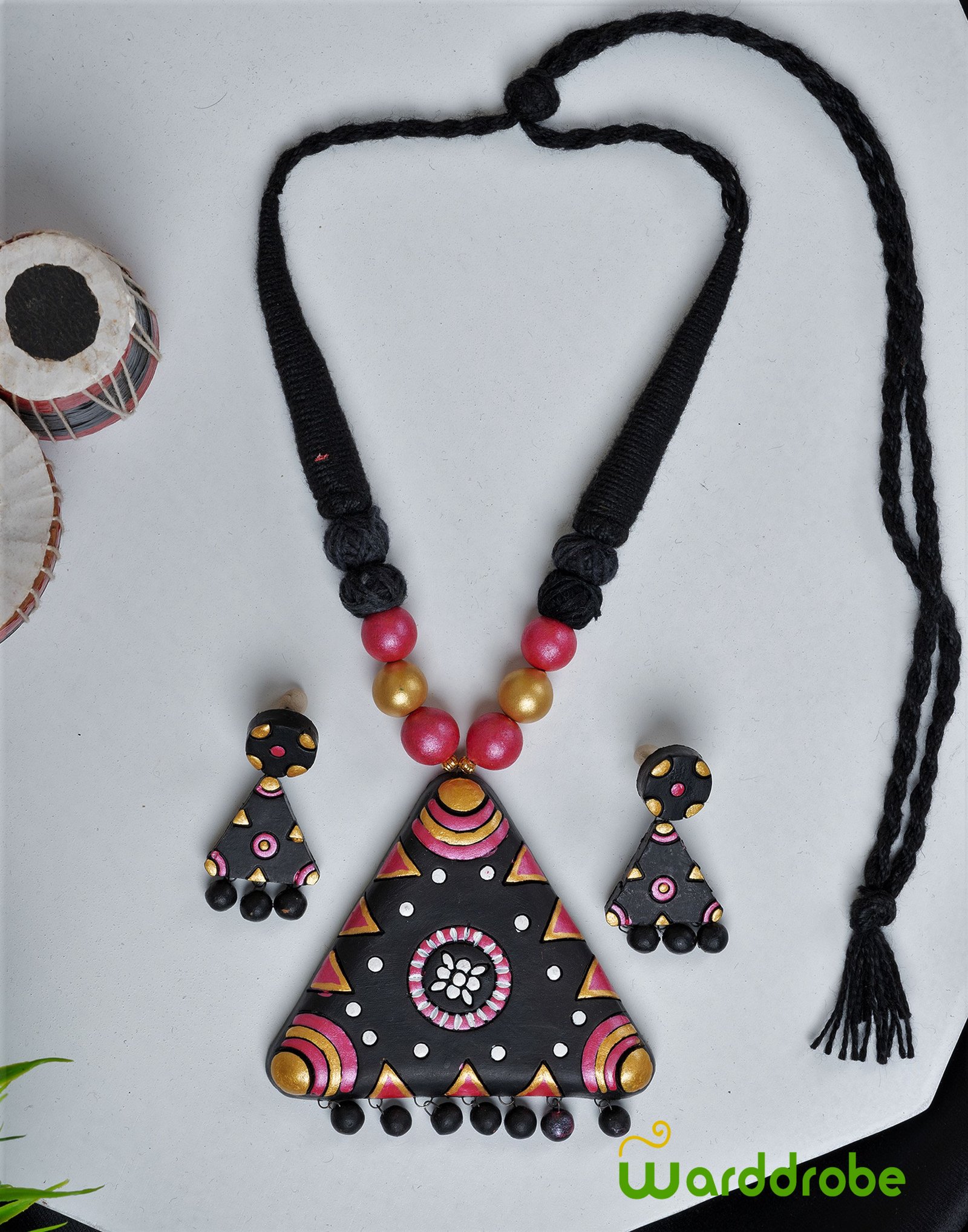 Handmade & Hand‑Painted Terracotta Jewellery Pendant Set.