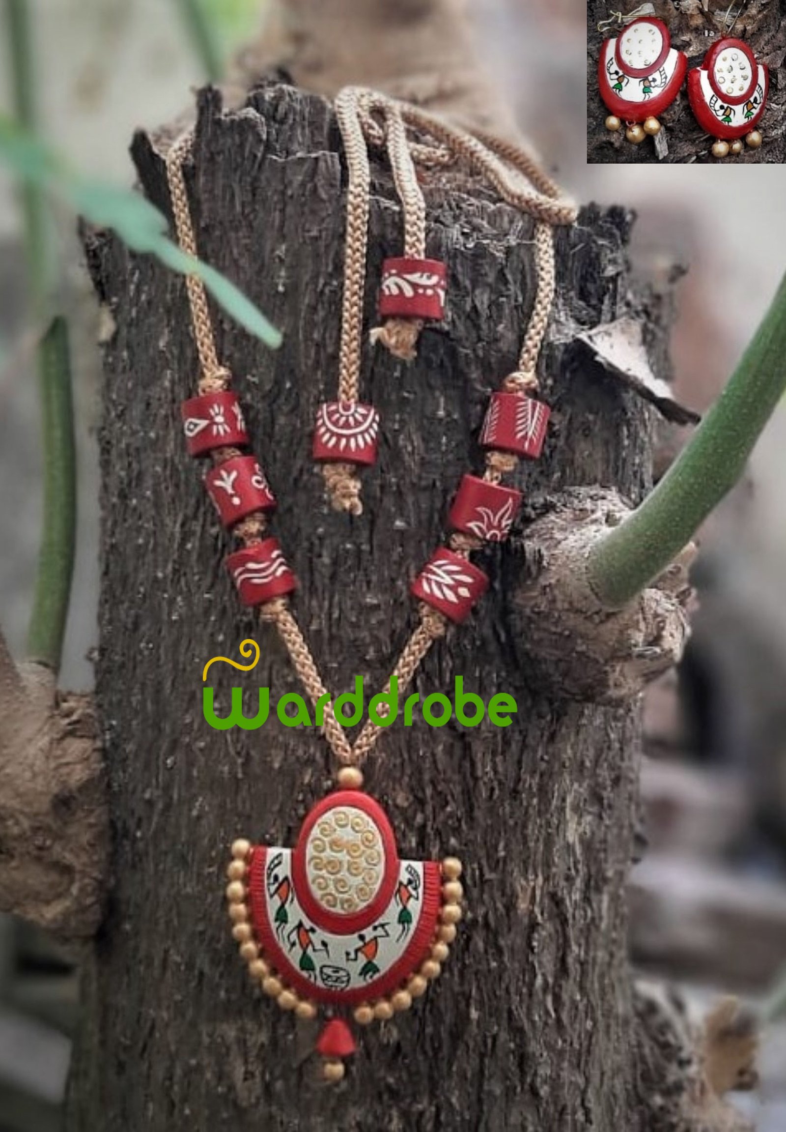 Handmade & Hand‑Painted Terracotta Jewellery Pendant Set.