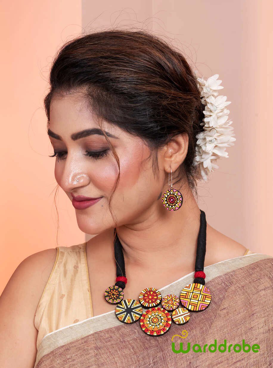 Handmade & Hand‑Painted Terracotta Jewellery Pendant Set.