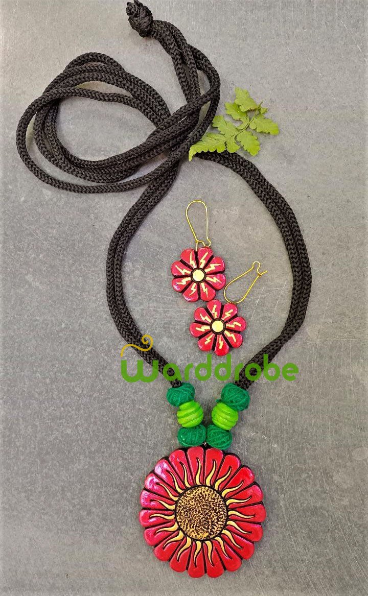 Handmade & Hand‑Painted Terracotta Jewellery Pendant Set.