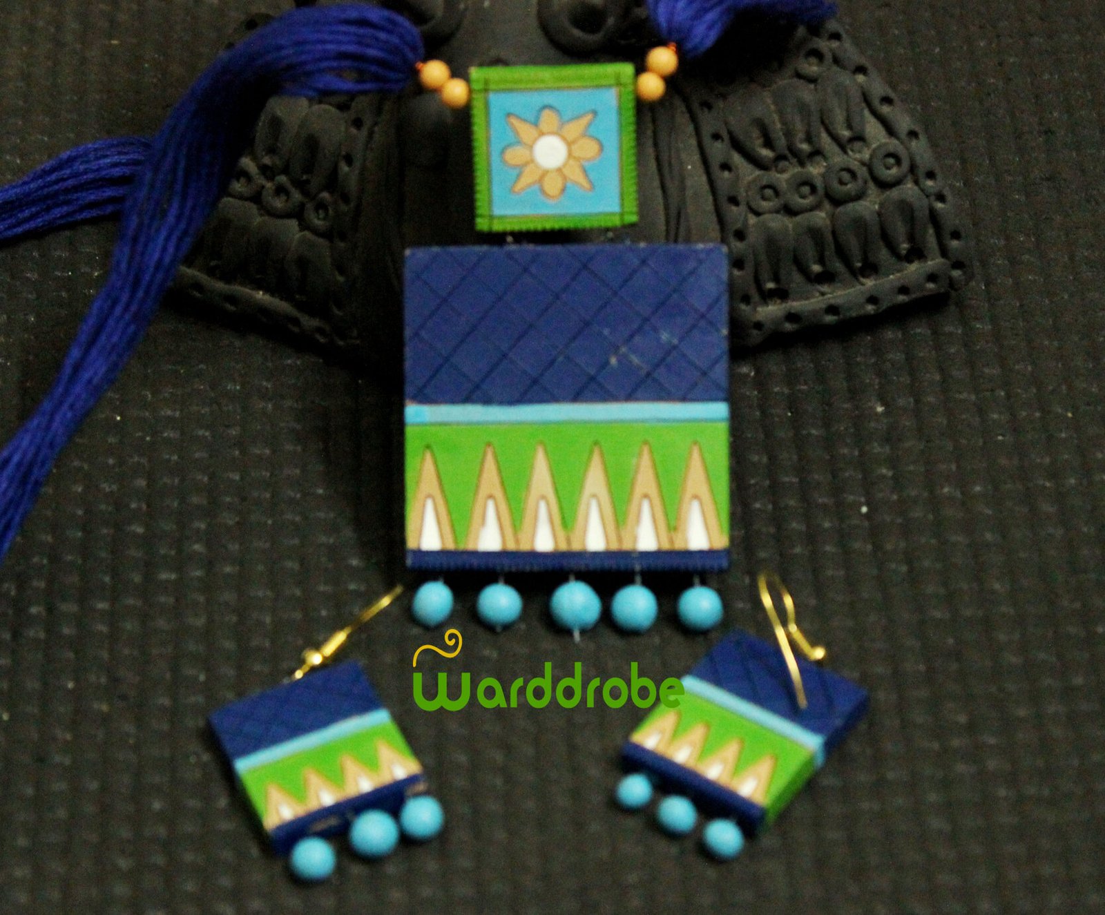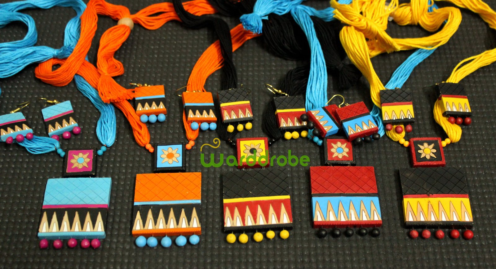 Handmade & Hand‑Painted Terracotta Jewellery Pendant Set.