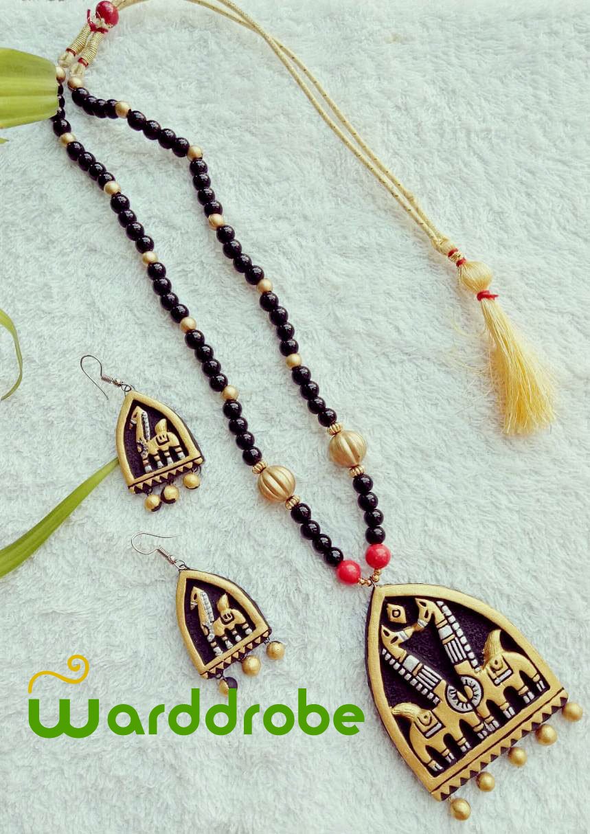 Handmade & Hand‑Painted Terracotta Jewellery Pendant Set.