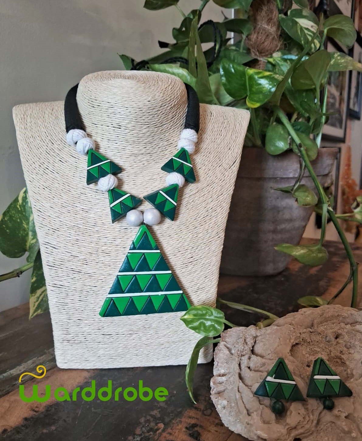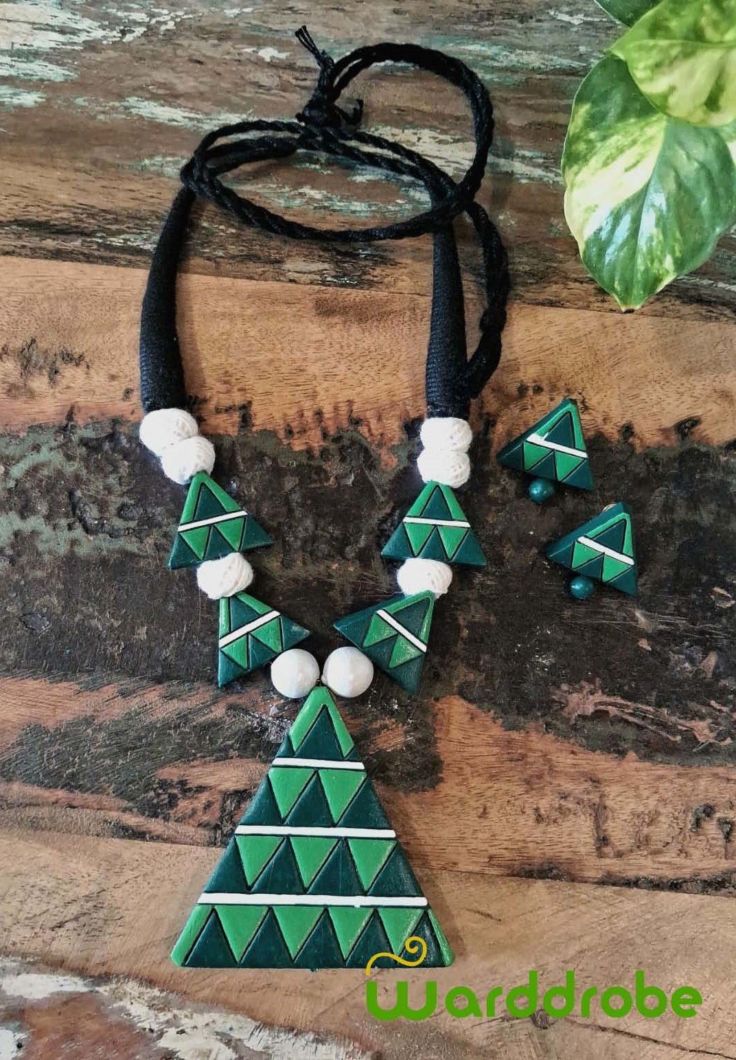 Handmade & Hand‑Painted Terracotta Jewellery Pendant Set.