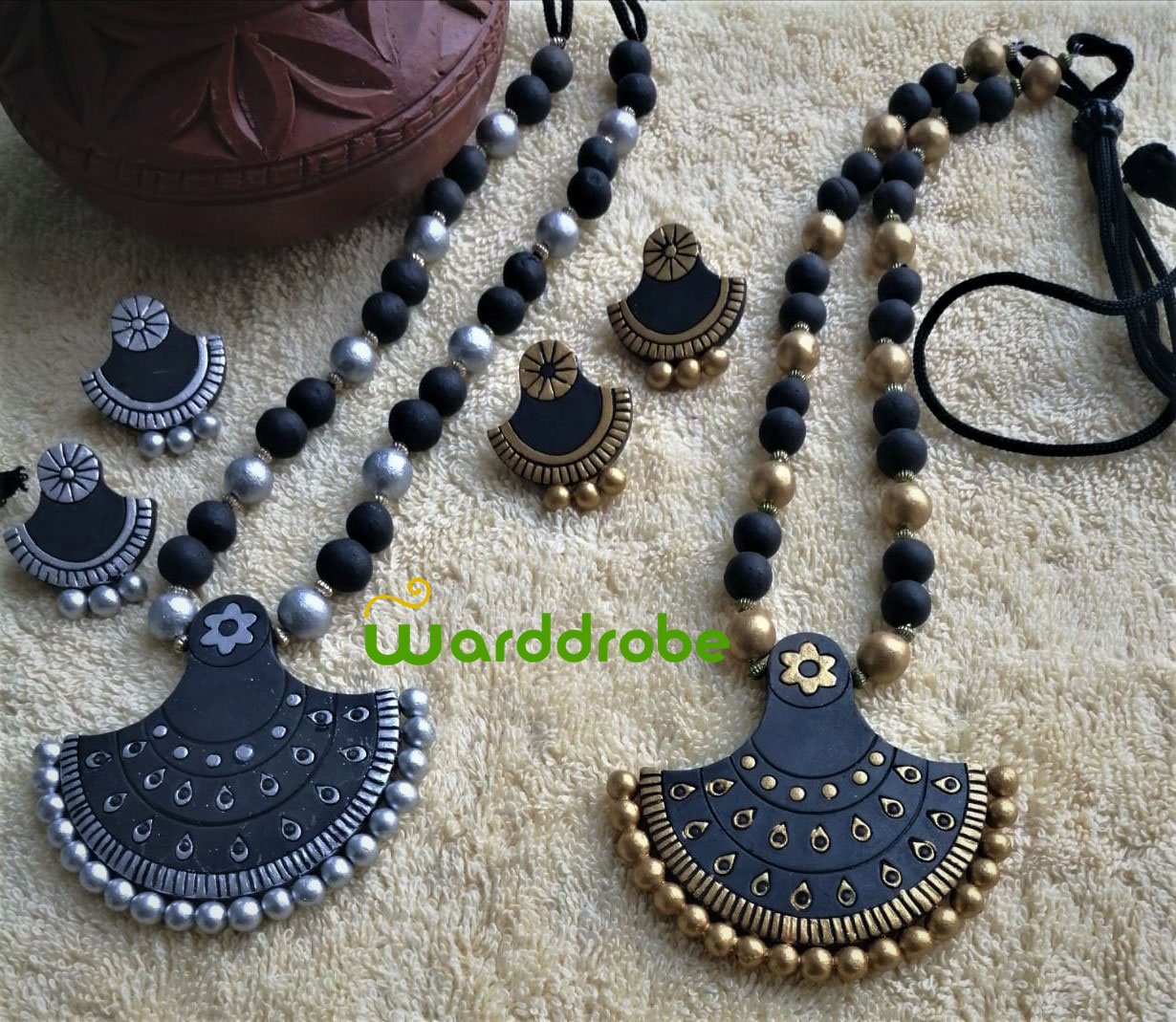 Handmade & Hand‑Painted Terracotta Jewellery Pendant Set.